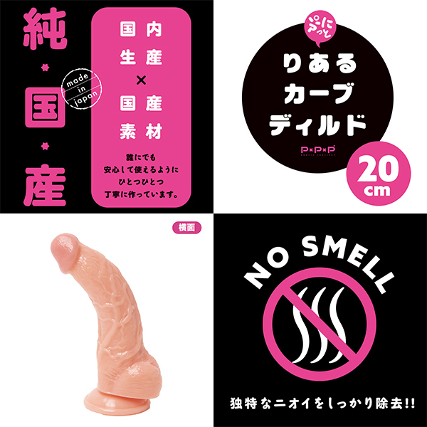 生々しい色味や細部の造形に上反りの逞しさ!滾るフォルムがギンギンな若いイチモツを想起させる「純国産ぷにっと(りあるカーブディルド 20cm)」です♪国内生産×国産素材にこだわったディルドで誰にでも安心して使えるようにひとつひとつ丁寧に作られています!プニュっとした握り心地にピンク色の亀頭、サオからタマにかけては人肌色で迸る血管とカリの造形♪視覚的にも楽しめて、挿入長20cmの長さが心地よい刺激を生み出してくれます。 特徴的な大きくカーブした形状は挿入に適度な抵抗感を生み出し、底部の吸盤が壁に貼り付けての立ちバックなどプレイをより深く楽しませてくれます!ディルド特有の独特のニオイも無く無臭なので、プレイに没頭しやすく快適なプレイで楽しませてくれます♪棒部分の長さは193mm、先端部分の最大径は45mmとなっています。 |