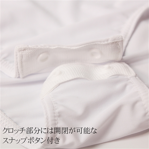 日本国内の工場で縫製され、伸縮性のある肌触りと薄っすらと透けるシースルー生地を使用したスナップボタン付きのレオタードです♪クロッチ部分に開閉が可能なスナップボタンを取り付ける事で、幅広いプレイに対応!U字ネックに半袖スリーブでレッグカットが浅めな王道デザインですが、クロッチ部分がスナップとなっているため、着けたままのプレイが可能となっています♪カラバリはブラックとホワイトの2色展開でこちらはホワイトとなっています♪ |