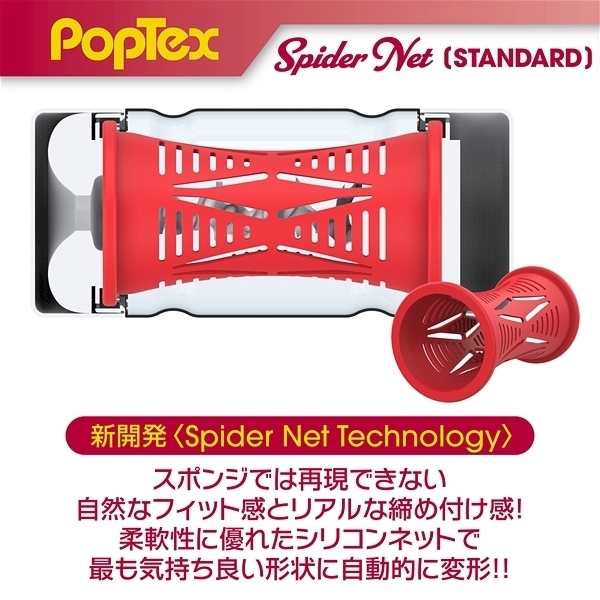 ポップテックススパイダーネットカップスタンダード<リアルな締め付け×ネットヒダ刺激の高機能カップホール>新開発SpiderNetTechnology搭載型カップホール!ホールを包み込む柔軟性に優れたシリコンネットで最も気持ち良い形状に自動的に変形することでスポンジでは再現できない自然なフィット感とリアルな締め付け感を実現しました!内部構造は網目状のネットヒダの中心にアクセントのイボ刺激のアクセント!強力に吸い付く最奥のバキュームスポットは天面の「OneWay」シールを剥がし空気を抜いて挿入することで内部のまとわりつき感をより楽しむことが出来ます。 ノーマルタイプのネットと肉厚のホールは抜群のフィット感で飽きのこない快感をあなたにお届けします。 使い捨てカップは経済的にも衛生的にもちょっと不安!という方にもおすすめの、本体をはずして洗える「リユースカップ」仕様。 ニオイ・ベタつきをカットした使い心地の良いもちもち素材を使用。 YELOLABローション付属。 |
