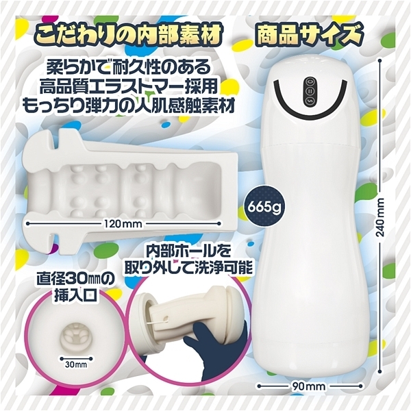 オナホールのバキュームとは全く違う。 電動ポンプ並みの吸引が襲う!圧巻のバキューム体験!吸い込み過ぎてあそこがバキューン!の「SUIKOMIバキューン」の登場です。 <電動ポンプの吸い込み力>×<振動>は吸い込みパターンの変化や振動パターンの変化で何度使っても新鮮な気持ちで楽しめます。 いつでもプレイ(後処理ラクラク)が可能で場所(携帯可能)も問いません。 手がベタつきにくい(直接触らない)。 電動だから固定して、ボタン操作だけで自動で動きます。 上下運動したり、捻じったり、傾けたり、回転させたり、擦りつけたり。 深く入れたり、先端だけ刺激したり、フェラチオ耐性強化にも使えます。 静穏設計。 らくらく後処理。 ロングプレイに最適です。 <パーフェクトフェラチオマシーン>とでも言うべきなのか?是非ともお試しいただき、この吸い込み、この刺激を体験していただきたい。 リラックス時間にどうぞお楽しみください。 ※ハマりすぎにはご注意ください。 |