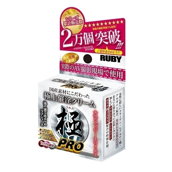 累計販売数2万個突破の大ヒット催淫クリームシリーズに「催淫クリーム極PRO」が新登場。 人気の成分はそのままに新たに3つの成分をトリプル配合。 PROの名にふさわしい商品に仕上がりました。 お互いに塗り合って極上のひと時をお楽しみください。 |