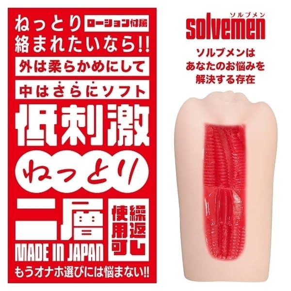 ソルブメンはあなたのお悩みを解決する存在です。 皆様はこのような話をご存知でしょうか?「オナホは同じ構造でも素材が変わると使用感が違う」はい大正解です。 それは真理です。 でも世の中は同じ構造かつ別素材のオナホを必ずしも発売してくれません。 それでは素材の違いによる使用感の変化を楽しむ事ができません。 そんな時こそsolvemenにお任せください!全く同じ構造ながら二層構造の内部素材を変えたものがコチラ。 「高刺激こすられ二層」と「低刺激ねっとり二層」になります。 見た目は同じなのにアラ不思議。 高刺激と低刺激を楽しめます。 まるで魔法のようにあなたの快感を惑わせる事でしょう。 素材だけではございません。 「絶頂刺激連続ヒダ突起構造」と名付けた特殊な内部構造をご覧ください。 どの素材でも一定の感度を担保する安定感の高い内部構造となっております。 あなたはオナホ選びに悩む必要はなくなります。 あなたのためにソルブメンがいるのです。 安心安全の日本製で繰り返し何度でも利用が可能です。 ●低刺激 |
