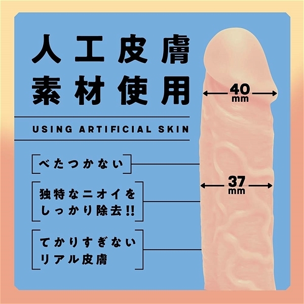 よりリアルを追求した、国内生産×国産人工皮膚素材のストレートディルドができました。 人工皮膚素材によって、てかりすぎないリアルな皮膚を再現しながら根元まで使えるストレート形状、誰にでも安心して使えるようにひとつひとつ丁寧に作っています。 ぷにっとやわらかやみつき感触×人工皮膚素材とリアルな造形でこだわりの仕上がり。 棒部分の長さは160mm。 先端部分の最大径は40mm。 ディルド初心者にもオススメです。 |