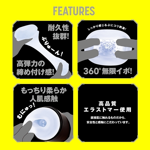超絶バキュームパワフル振動のハイクオリティ電動オナホが登場!根こそぎ飲み込む吸引7パターン!芯まで震える強振動7パターン!高性能モーター搭載によりパワフルなのに静かな吸引振動を実現しました。 稼働音を気にせずプレイに集中できます。 初心者にも使いやすい電動ホールです。 シンプルな2つボタンで片手でも操作が可能です。 インナーホールを取って洗うだけなので、後処理も超簡単です。 重量約620gで手持ち操作も楽々です。 直接肌に触れるものだから、安全性と感触にこだわり高品質なエラストマーを使用しています。 耐久性抜群の高弾力素材が吸い付きながら締め付けてくる搾精吸引!もっちり柔らか人肌感触の挿入口と360°無限イボはしっかり感じるぷにコリ刺激がリアルを超える!静音設計≦65dB。 充電用USBケーブル付属。 |