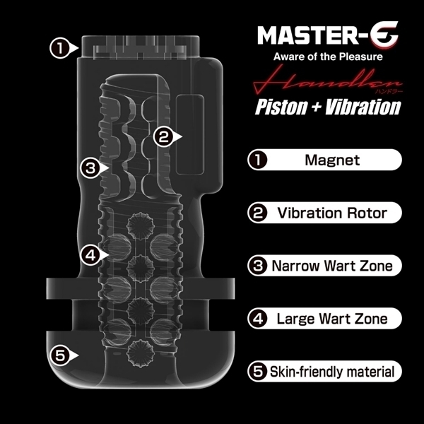 男性のセルフケアを追求し、快適で新しい快感の形を目指す『Master-E』シリーズ。 単純な機能だけではなく、持ちやすくストレスフリーで遊べる電動セルフケア・ガジェットの登場です。 このハンドラーは振動とピストン機能を搭載した電動セルフケア・ガジェットです。 全体を包み込み上下に揺れることで官能的な刺激を与え、小刻みに震えることで快感を増幅させます。 全9種類の振動・ピストンパターンを搭載しており、お好みの官能を得られることでしょう。 またハンドルが付いており、持ちやすさが大幅にアップ!ストレスなくプレイを体感することが可能です。 ホール部分には人肌に近い弾力素材を採用し、使用感は抜群。 またホールと本体を簡単に分割することができるので、使用後はホールを洗浄し、清潔さを保つことができます。 便利なUSB充電式を採用し、およそ60分の充電で、60分間の使用が可能です。 ストレスなく、気軽に、ピストン&振動を楽しむことが可能なMASTER−Eハンドラー。 電動セルフケア・ガジェットの新たな地平をお楽しみください。 |