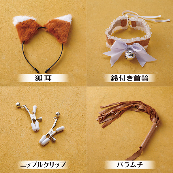 可愛らしい狐娘に変身できるソフトSM5点セットです♪セット内容は、キュートな狐耳カチューシャ、鈴付き首輪、乳首クリップ、しっぽ型アナルプラグ、そしてバラムチが含まれています!初心者にも扱いやすい優しい素材で作られており、安心してプレイを楽しめます♪可愛らしさとソフトな刺激を両立し、パートナーとの特別な時間を盛り上げるのにぴったりです!しっぽやバラムチはリアルな質感で、見た目の可愛さだけでなく使用感にもこだわっています♪乳首クリップは鈴付きで遊び心もプラス!首輪も軽くて装着しやすく、コスプレ気分を手軽に楽しめます♪コンパクトで使いやすいセット内容なので、初心者から経験者まで幅広くおすすめです!日常に新しい刺激をプラスしたい方にぜひお試しいただきたいアイテムです♪ |