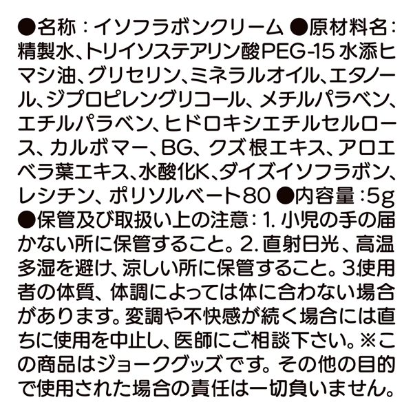 やさしく塗り込むことで繊細な部位のケアをサポートする女性用クリームです♪大豆イソフラボンやアロエエキス、ハーブ成分を配合し、しっとりとなめらかな質感が特長です!適量を手に取り、乳首まわりにやさしくなじませるだけの簡単ケア♪肌にやさしい処方で、デリケートな部位にも安心して使用できます!持ち運びしやすいサイズ感で、旅行先やリラックスタイムにもおすすめです♪使用の際は必ず相手の同意を得た上でご利用ください!ローション付きで使いやすさも◎♪日本製ならではのこだわりが詰まった、ジョークグッズとしても楽しめるアイテムです!日々のボディケアのひとつとして、おだやかな時間を演出します♪ |