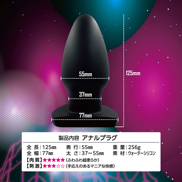標準的なバレット形状のアナルプラグがウォーターシリコン素材となってさらに楽しめるようになりました!こちらの「エイナスストッパー WSウォーターシリコン (03)」はソフトで滑らかな挿入感が楽しめるスタンダードな使用感が特徴です。 アナルの魅力を満足させる美しいボディラインにシリコンを超える進化素材!超しっとりでなめらか、快感度を追求したマテリアルが新たな快感のステージへと誘ってくれます。 生々しい生体的な肉感弾力に人体や環境にも優しい安心材料♪サイズ的には太さ3.7〜5.5センチのストッパーということで、少し太めのレギュラーサイズのマニアックな快感が味わえます。 底面部分は平らになっているので挿入時の行動を制限しません。 拡張や圧迫などのマニアでアブノーマルなプレイを存分にお楽しみ下さい♪ |